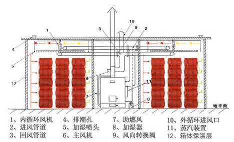 該設備由燃燒裝置和烘干窯兩大部分組成。